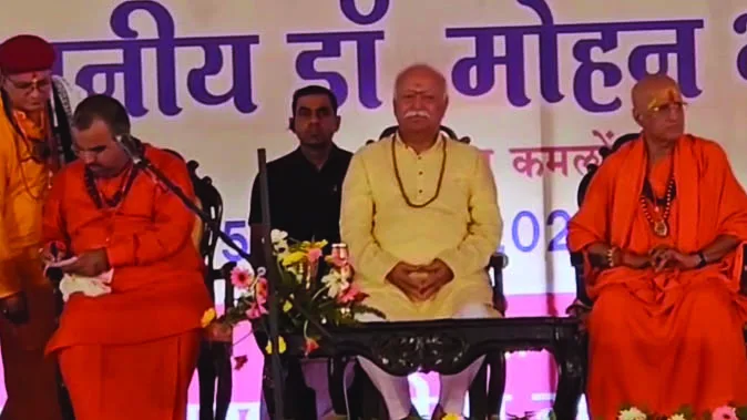 ‘നിരവധി സിന്ധി സഹോദരര്‍ ഇവിടെ ഇരിക്കുന്നുണ്ട്. നമ്മളെല്ലാം ഒരു ഭാരതത്തിന്റെ മക്കളാണ്. സാഹചര്യങ്ങളുടെ സമ്മര്‍ദത്തിലും നിങ്ങളെല്ലാം ഈ മണ്ണിലുറച്ചുനിന്നു. നമ്മുടേത് ഒരു വീടാണ്. അതിലൊരു മുറി മറ്റ് ചിലര്‍ കൈവശപ്പെടുത്തി. എന്നാല്‍ അവിടെയുള്ളത് നമ്മുടെ തന്നെ സ്വത്താണ്. അത് നമ്മിലേക്കുതന്നെ എത്തിച്ചേരും, മോഹന്‍ ഭാഗവത് പറഞ്ഞു.
