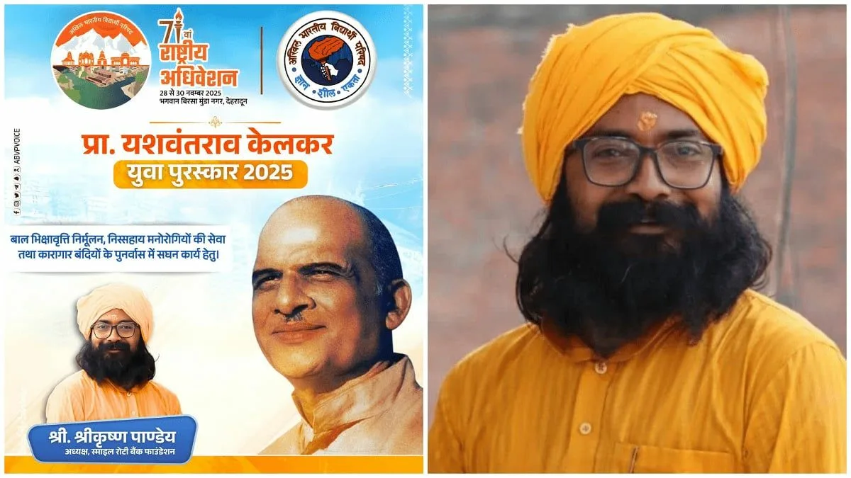 ന്യൂദല്ഹി: പ്രൊഫ. യശ്വന്ത് റാവു ഖേല്ക്കര് യുവ പുരസ്കാരം സ്മൈല് റൊട്ടി ബാങ്ക് ഫൗണ്ടേഷന് സ്ഥാപകന് ശ്രീകൃഷ്ണ പാണ്ഡെക്ക്. ഒരു ലക്ഷം രൂപയും പ്രശസ്തിപത്രവും ഫലകവുമടങ്ങുന്ന പുരസ്കാരം എബിവിപിയും വിദ്യാര്ത്ഥി നിധി ട്രസ്റ്റും സംയുക്തമായാണ് ഏര്പ്പെടുത്തിയത്. ഈ മാസം 28, 29, 30 തീയതികളില് ഉത്തരാഖണ്ഡിലെ ഡെറാഡൂണില് നടക്കുന്ന എബിവിപി 71-ാം ദേശീയ സമ്മേളനത്തില് സമ്മാനിക്കും.