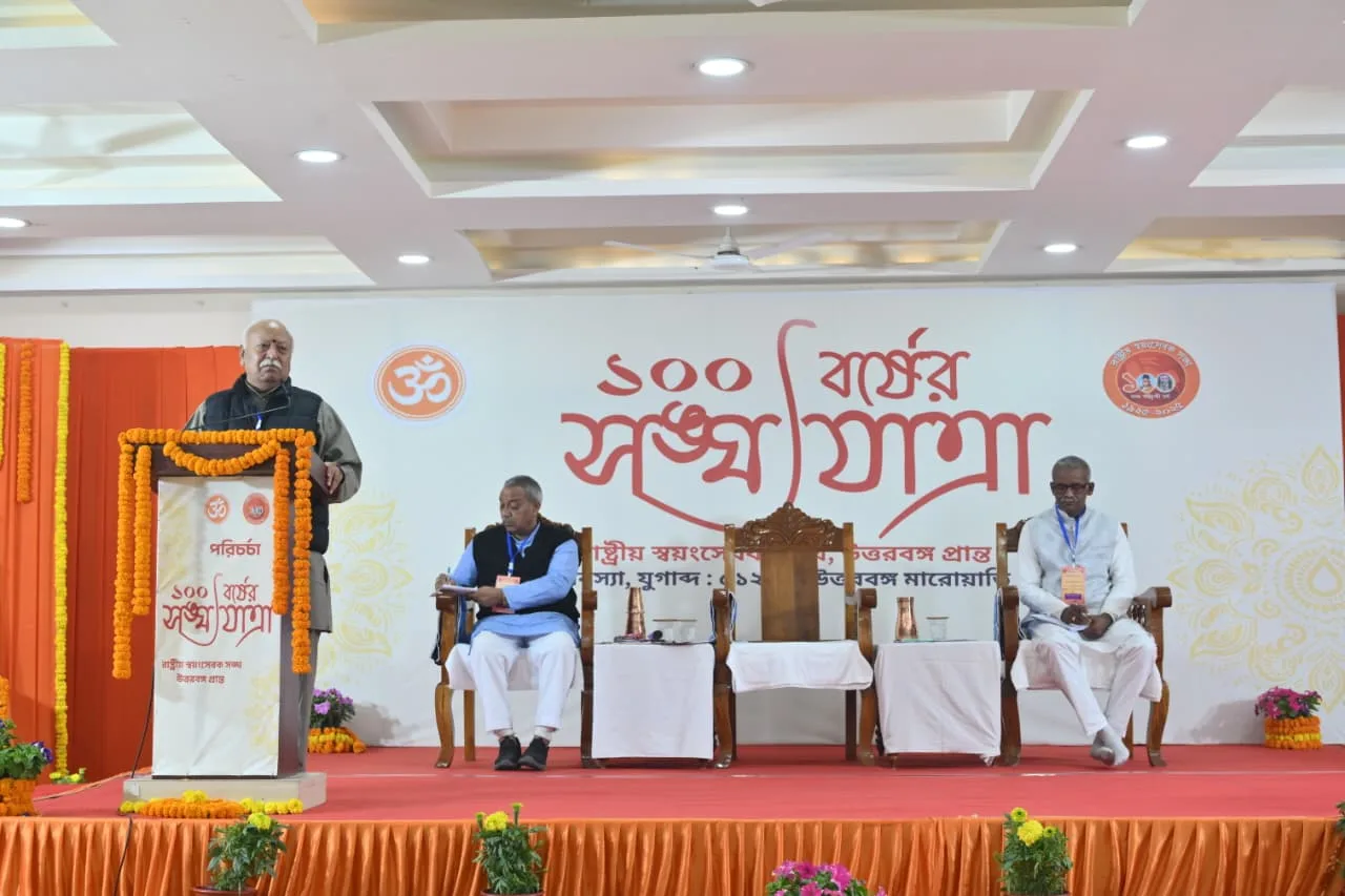 സിലിഗുരി(ബംഗാള്): ആരെയെങ്കിലും എതിര്ക്കുക ആര്എസ്എസിന്റെ ലക്ഷ്യമല്ലെന്ന് സര്സംഘചാലക് ഡോ. മോഹന് ഭാഗവത്. സംഘത്തിന് സ്വാര്ത്ഥമോഹങ്ങളില്ല. പദവികളിലോ അധികാരത്തിലോ താല്പര്യവുമില്ല. അത്തരത്തിലെന്തെങ്കിലും സ്വന്തമായി നേടണമെന്ന ആഗ്രഹത്തിലല്ല സംഘം പ്രവര്ത്തിക്കുന്നതെന്ന് അദ്ദേഹം പറഞ്ഞു. ആര്എസ്എസ് ശതാബ്ദി പ്രവര്ത്തനത്തിന്റെ ഭാഗമായി ഉത്തര് ബംഗ മാര്വാഡി ഭവനില് സംഘടിപ്പിച്ച പ്രമുഖ പൗരന്മാരുടെ സമ്മേളനത്തില് സംസാരിക്കുകയായിരുന്നു സര്സംഘചാലക്.
