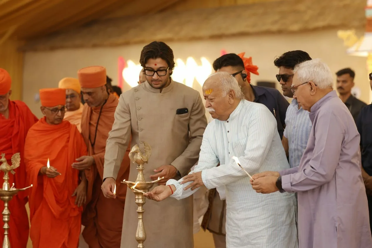ഖേഡ (ഗുജറാത്ത്): ഇന്നത്തെ സാഹചര്യങ്ങളിൽ, ലോകത്തെ മുഴുവൻ നയിക്കാനുള്ള ചുമതല ഭാരതത്തിൻ്റേതാണെന്ന് ആർ എസ് എസ് സർസംഘചാലക് ഡോ. മോഹൻ ഭാഗവത്. ധർമ്മം പാലിച്ചു കൊണ്ട് ധർമ്മത്തെ സംരക്ഷിക്കാൻ നമുക്ക് കഴിയണമെന്ന് അദ്ദേഹം പറഞ്ഞു.ജേതൽപൂർ ധാം ശ്രീ സ്വാമിനാരായണ ക്ഷേത്രത്തിൽ ശ്രീ രേവതി ബൽദേവ് ഹരികൃഷ്ണ മഹാരാജ് ദ്വിശതാബ്ദി പട്ടോത്സവത്തിൽ സംസാരിക്കുകയായിരുന്നു സർസംഘചാലക്.
