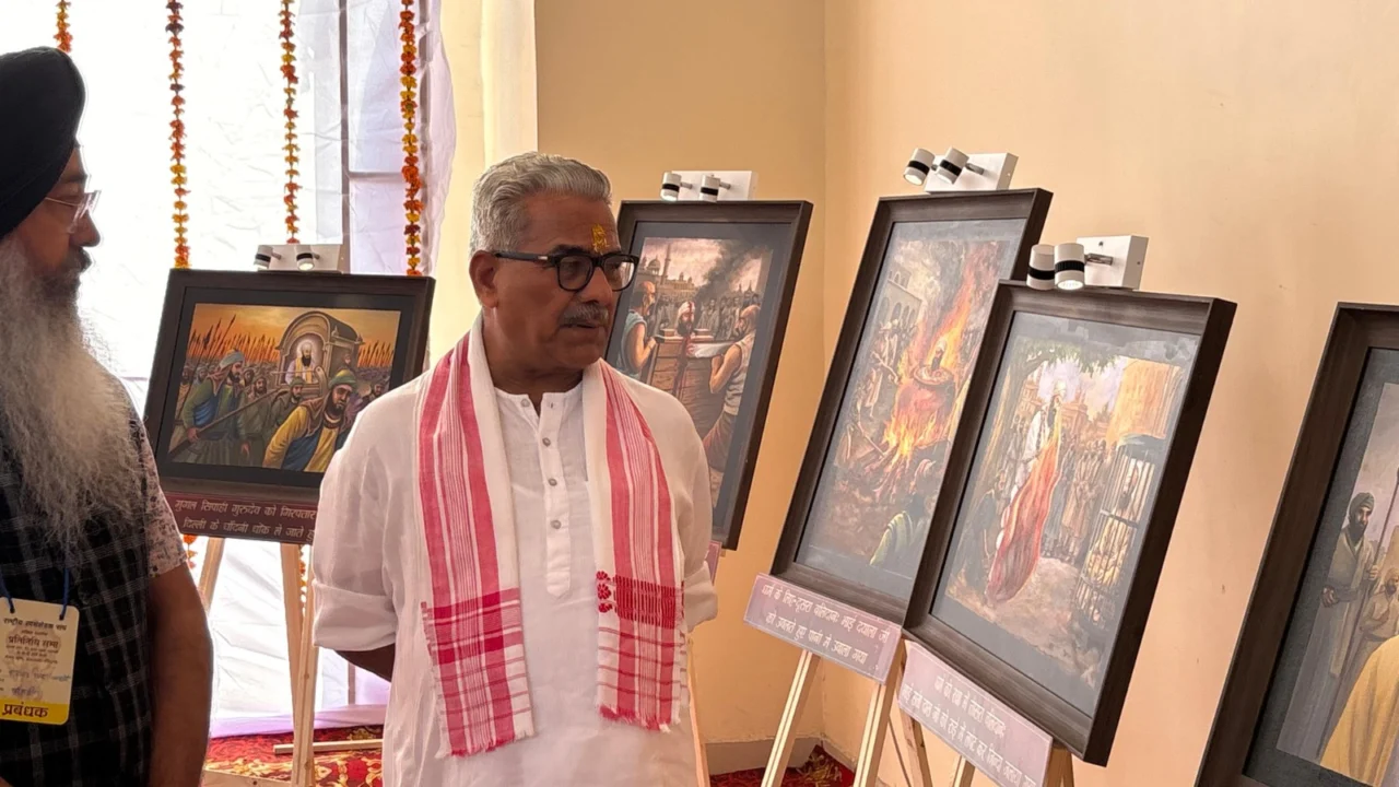 ഭാരതമാതാവിന്റെയും ഗുരു തേഗ്ബഹാദൂറിന്റെയും ഛായാചിത്രങ്ങളില് അദ്ദേഹം പുഷ്പാര്ച്ചന നടത്തി.നാല് വിഭാഗങ്ങളായാണ് പ്രദര്ശിനി തയാറാക്കിയിട്ടുള്ളത്. ഹരിയാനയില് നിന്നുള്ള സ്വാതന്ത്ര്യ സമര സേനാനികള്, ധീരയോദ്ധാക്കള്, കായികതാരങ്ങള്, വിവിധ മേഖലകളില് വിജയം നേടിയ പ്രമുഖ വ്യക്തികള് എന്നിവരുടെ ചിത്രങ്ങളും വിവരണങ്ങളും ഒരു വിഭാഗത്തിലുള്ളത്. രണ്ടാമത്തെ വിഭാഗത്തില് ഗുരു തേഗ്ബഹദൂറിന്റെ ജീവിതത്തിലെ പ്രധാന സംഭവങ്ങളുടെ ചിത്രീകരണം. സരസ്വതി നദിയുമായും ഭഗവദ്ഗീതയുമായും ഹരിയാനയുടെ ബന്ധം അടയാളപ്പെടുത്തുന്ന പ്രദര്ശനങ്ങള്. ഹരിയാനയില് ആര്എസ്എസ് പ്രവര്ത്തനങ്ങള് വ്യാപിപ്പിക്കുന്നതില് നിര്ണായക പങ്ക് വഹിച്ച പൂര്വകാലപ്രവര്ത്തകരുടെ ഛായാചിത്രങ്ങളും ഉള്പ്പെടുത്തിയിട്ടുണ്ട്.