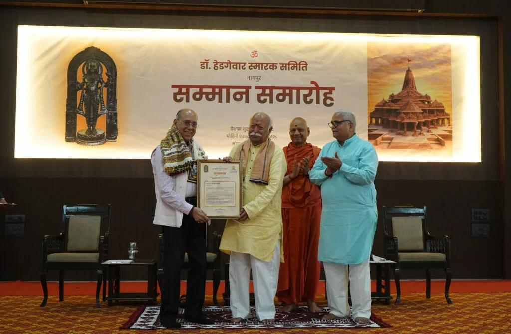 നൃപേന്ദ്ര മിശ്ര, ജഗദീഷ് ആഫലെ, ഗിരീഷ് സഹസ്ത്രഭോജനി, ജഗന്നാഥ് ഗുള്വെ, ആശിഷ് സോംപുര,നിഖില് സോംപുര, അരുണ് യോഗിരാജ്, ജയ് കാകതികര്, മനിഷ് ത്രിപാഠി, സത്യനാരായണ പാണ്ഡെ, അനില് സുതാര്, കേശവ് ശര്മ്മ, വിനോദ് ശുക്ല, രാജീവ് ദുബെ, മനീഷ് ദാധിച്ച്, വിനോദ് മേത്ത, അങ്കുര് ജെയിന്, രാജു കുമാര് സിങ്, എ.വി.എസ്. സൂര്യ ശ്രീനിവാസ് നരേഷ് മാളവ്യ, പരേഷ് സോംപുര, നാഥ് അയ്യര്, സഞ്ജയ് തിവാരി, ശരദ് ബാബു ജി, അനില് മിശ്ര, ഗോപാല്. ചമ്പത് റായ് ഗോവിന്ദദേവ് ഗിരി മഹാരാജ്, വാസുദേവ് കാമത്ത്, റംസാന്ഭായ് എന്നിവരെ ചടങ്ങില് ആദരിച്ചു.