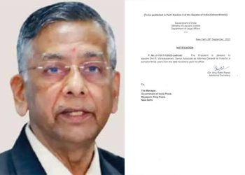 അറ്റോർണി ജനറൽ നിയമനം; വിശ്വാസം അർപ്പിച്ച കേന്ദ്ര സർക്കാരിന് നന്ദി അറിയിച്ച് ആർ വെങ്കിട്ടരമണി