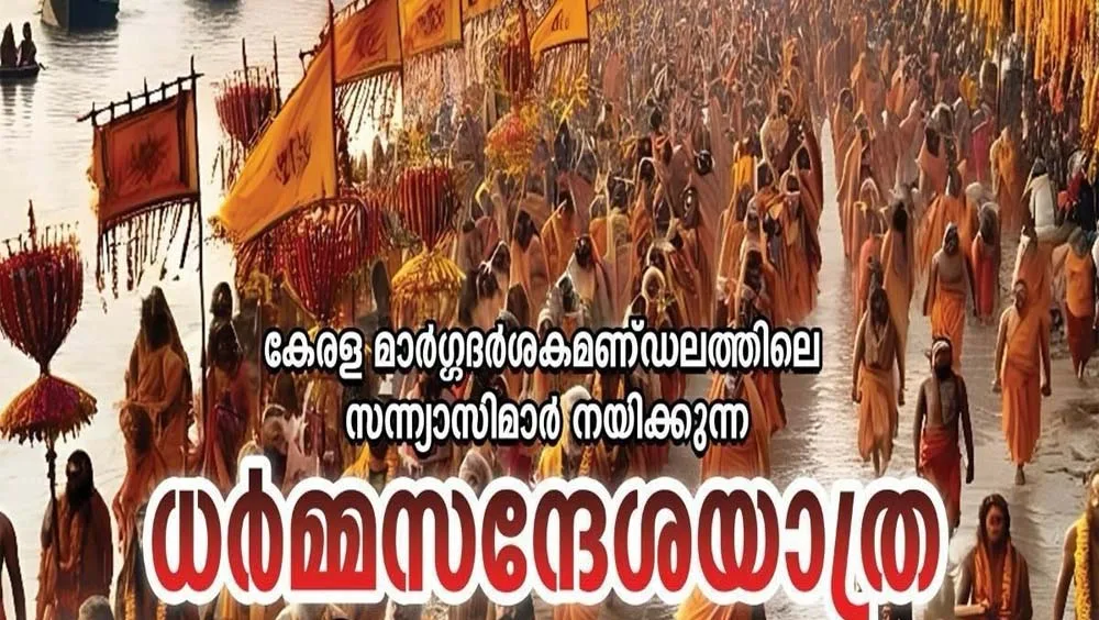 തിരുവനന്തപുരം: മാർഗദർശക് മണ്ഡലിന്റെ ആഭിമുഖ്യത്തിൽ നടക്കുന്ന ധർമ്മ സന്ദേശ യാത്രയ്ക്കുള്ള ഒരുക്കങ്ങൾ പൂർത്തിയാകുന്നു. കേരളത്തിലെ എല്ലാ ആശ്രമങ്ങളിലെയും പരമ്പരകളിൽ പെട്ട രണ്ടായിരത്തിൽ പരം സന്യാസിമാരെ സംഘടിപ്പിച്ചുകൊണ്ടുള്ള യാത്ര കാസർഗോഡ് മുതൽ തിരുവനന്തപുരം വരെയാണ് നടക്കുക. ഒക്ടോബർ 7 മുതൽ ഒക്ടോബർ 21 വരെയാണ് യാത്ര.