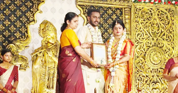 വിവാഹവേദിയില്‍ നേത്രദാന സമ്മതം; സേവാഭാരതി, സക്ഷമ എന്നീ സംഘടനകള്‍ക്കുള്ള മംഗളനിധിയും വധൂവരന്‍മാര്‍ കൈമാറി