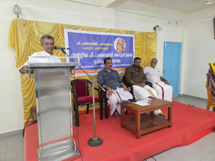 ​സൈന്ധവ ദേശീയതയും കേരളവും ഒന്ന് തന്നെയാണ് എന്ന് തന്റെ ജീവിതത്തിലൂടെയും അറിവിലൂടെയും എഴുത്തിലൂടെയും പ്രഭാഷണത്തിലൂടെയും കാട്ടിത്തന്ന മഹാനായിരുന്നു പി. പരമേശ്വർജി എന്ന് പ്രഭാഷണ പരമ്പരയുടെ ഉദ്ഘാടനം നിർവ്വഹിച്ചുകൊണ്ട് ആർ.എസ്.എസ് പ്രാന്ത സഹകാര്യവാഹ് കെ. ബി. ശ്രീകുമാർ പറഞ്ഞു. മാർക്സിസ്റ്റ്‌ പ്രത്യയശാസ്ത്രം അതിന്റെ എല്ലാ ദുഷ്പ്രവണതകളോടും കൂടി കേരള സമൂഹത്തെ പിടിമുറുക്കിയിരുന്ന കാലത്ത് നമുക്ക് വെളിച്ചം പകർന്നു നൽകി ഈ ലോകത്തിന്റെ മനോഹാരിതയെ വെളിവാക്കി തരികയായിരുന്നു പരമേശ്വർജി ചെയ്തത്. പരമേശ്വർജി നടന്ന വഴികളിലൂടെ ആദർശം രൂപപ്പെട്ടുകൊണ്ടിരുന്നു. അതേസമയം പരമേശ്വർജിയുടെ ആഴത്തിലുള്ള വായനയും അറിവുമൊന്നും സാധാരണക്കാരോട് ഇടപെടുന്നതിൽ നിന്നും അദ്ദേഹത്തെ തടഞ്ഞില്ലെന്നും കെ. ബി. ശ്രീകുമാർ കൂട്ടിച്ചേർത്തു.