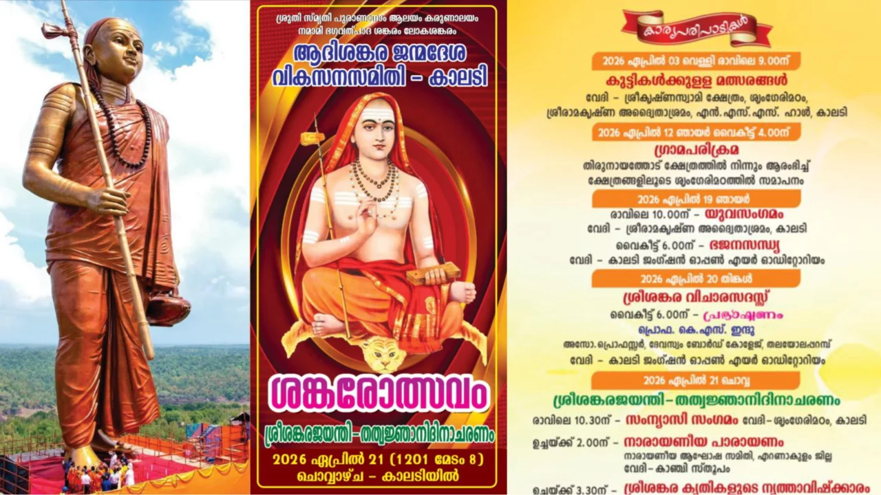 കാലടി: ആദിശങ്കര ജന്മദേശ വികസന സമിതിയുടെ നേതൃത്വത്തിലുള്ള ശ്രീശങ്കര ജയന്തി ആഘോഷങ്ങള്ക്ക് ഇന്ന് തുടക്കമാകുമെന്ന് ഭാരവാഹികള് വാര്ത്താസമ്മേളനത്തില് പറഞ്ഞു. ഇന്ന് രാവിലെ 10ന് എന്എസ്എസ് കരയോഗം ഹാളില് യുവസംഗമം നടക്കും. മോട്ടിവേഷന് ട്രെയിനി ഡോ. അഭിജിത്ത് കര്മ്മ ക്ലാസ് എടുക്കും. വൈകിട്ട് 6ന് കാലടി ജങ്ഷന് ഓപ്പണ് എയര് ഓഡിറ്റോറിയത്തില് ഭജന സന്ധ്യ. നാളെ വൈകിട്ട് 6ന് ശ്രീശങ്കര വിചാരസദസില് പ്രൊഫ. കെ.എസ്. ഇന്ദുവിന്റെ പ്രഭാഷണം. 21ന് ശ്രീശങ്കര ജയന്തി ദിനത്തില് രാവിലെ 10ന് ശൃംഗേരി മഠം ഹാളില് സംന്യാസി സംഗമം നടക്കും. മാര്ഗ്ഗദര്ശക മണ്ഡലം ഉള്പ്പെടെ കേരളത്തിലെ വിവിധ സംന്യാസി മഠങ്ങളില് നിന്നായി നൂറിലധികം സംന്യാസി ശ്രേഷ്ഠന്മാര് സംഗമത്തില് പങ്കുചേരും. സ്കൂള്, കോളജ് വിദ്യാര്ത്ഥികള്ക്കായി നടത്തിയ അഖിലകേരള ശ്രീശങ്കര സ്തോത്രാലാപന മത്സരത്തിലെ വിജയികള്ക്ക് സംഗമത്തില് സര്ട്ടിഫിക്കറ്റുകളും സമ്മാനങ്ങളും വിതരണം ചെയ്യും. ഉച്ചതിരിഞ്ഞ് 2.30ന് കാഞ്ചീസ്തൂപം വേദിയില് അഖില ഭാരതീയ നാരായണീയ പാരായണ ആഘോഷസമിതിയുടെ 500ല് അധികം പേര് പങ്കെടുക്കുന്ന നാരായണീയ പാരായണം, തുടര്ന്ന് ഡോ. ശ്രീലക്ഷ്മി സനീഷ് നേതൃത്വം നല്കുന്ന ശ്രീശങ്കരാചാര്യ കൃതികളുടെ നൃത്താവിഷ്ക്കാരവും നടക്കും.