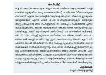 സുപ്രീംകോടതി വരെ പോയി തോറ്റു ആര്എസ്എസിനെതിരെ തെറ്റായ ലേഖനം; മാതൃഭൂമി ഖേദം പ്രകടിപ്പിച്ചു