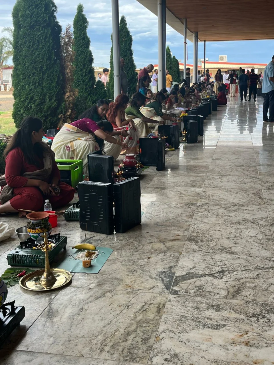 അനീഷ് രാജൻ ക്ഷേത്രം പ്രസിഡൻ്റ് ഗേരി വർമ്മ, കേരള ഹിന്ദു സൊസൈറ്റി പ്രസിഡൻ്റ് ശ്രീകുമാർ, സെക്രട്ടറി പ്രദീപ് എന്നിവർ ചേർന്ന് ഭദ്രദീപം കൊളുത്തി പൊങ്കാല ചടങ്ങുകൾക്ക് തുടക്കം കുറിച്ചു.